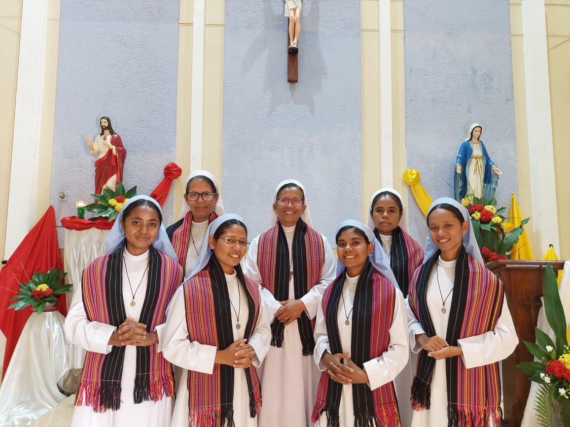 Misa syukur atas penerimaan novis I dilaksanakan pada jam 18.30. OTL yang dipimpin oleh Pastor paroki Imakulada Conseisaun Se Catedral Dili (Pe. Paulus Maia). Suka cita ini dilanjutkan dengan seremonial dengan penuh suka cita.