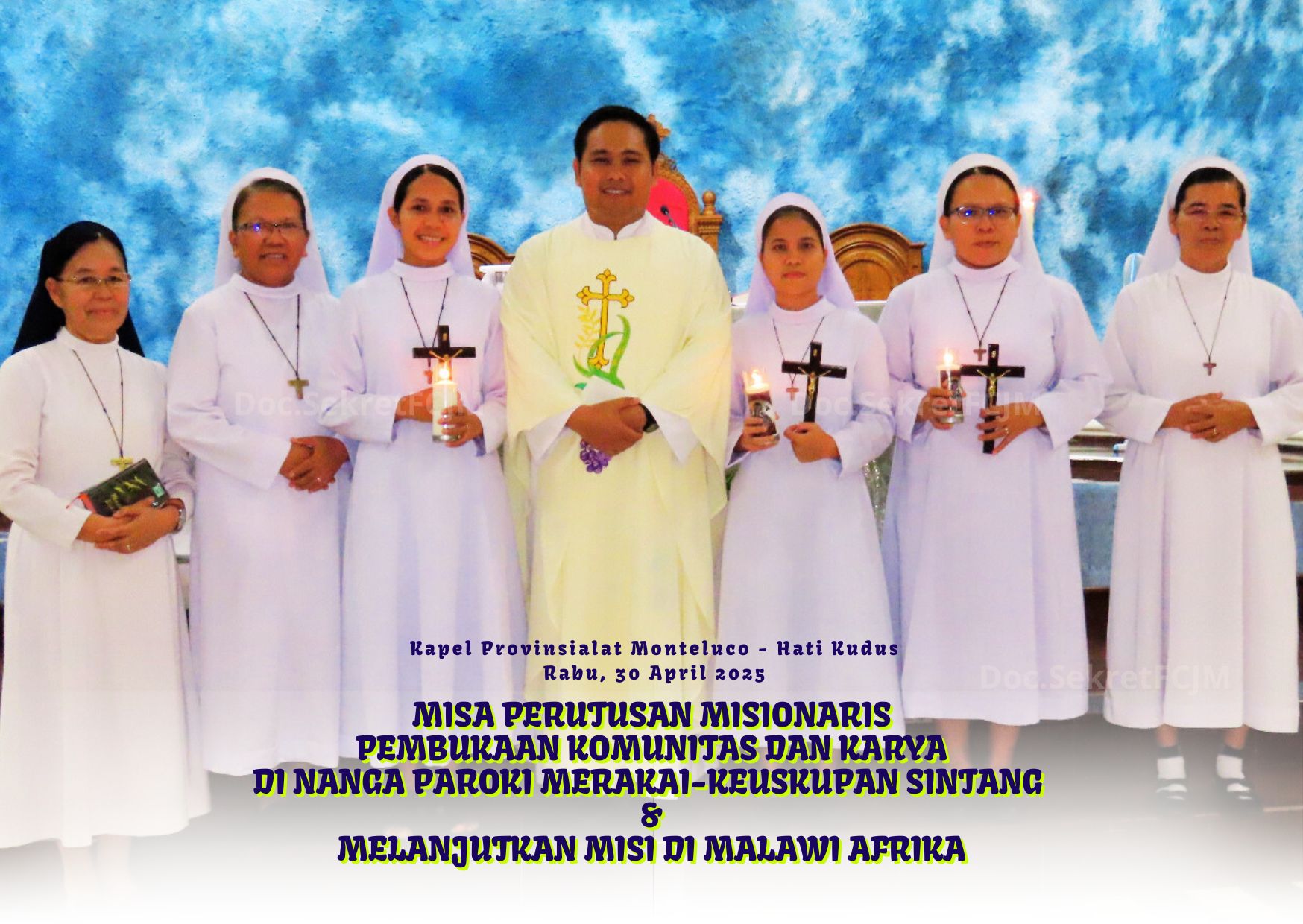Dalam semangat cinta dan kasih, Kongregasi FCJM Provinsi Indonesia membuka lembaran baru dalam sejarah karya pastoral. Dengan hati yang penuh ketulusan, para suster melangkah menuju Nanga Paroki Merakai, Keuskupan Sintang, serta Malawi, Afrika—membawa terang iman dan cinta kasih ke tempat-tempat yang menantikan kehadiran mereka.